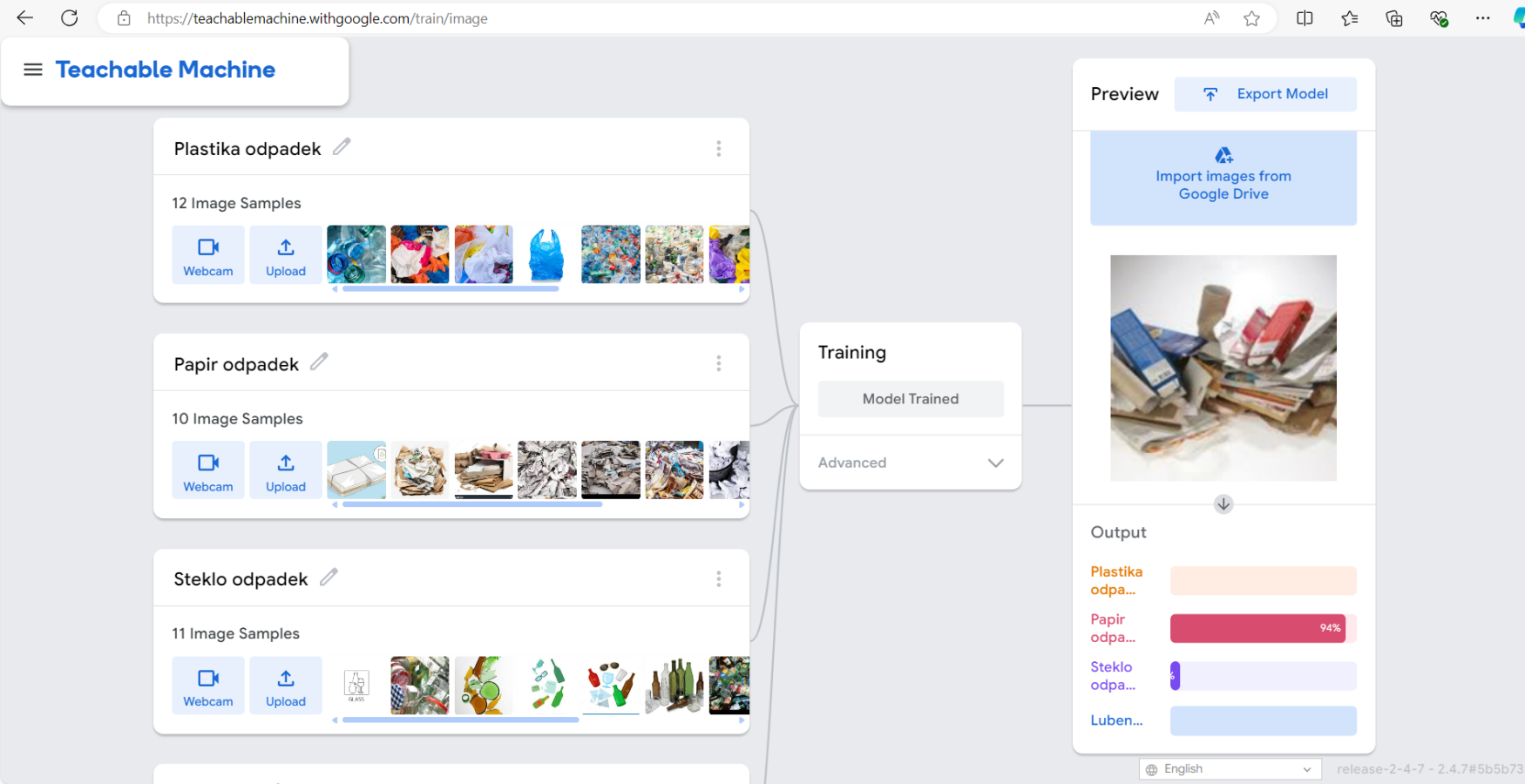 Dijaki ITS Naravni pogon so se v zadnjih tednih seznanili s krožnim gospodarstvom in umetno inteligenco ter povezovanjem slednjih. Učenje je potekalo v okviru programa Girls Go Circular, katerega namen je ozaveščanje srednješolk (in srednješolcev) o smotrnosti in aktivnostih krožnega gospodarstva. Po opravljenih modulih Uvod v spletno varnost in Uvod v krožno gospodarstvo so spoznali, kaj je umetna inteligenca in kakšne priložnosti prinaša, tudi v povezavi s trajnostno obliko gospodarstva. Svoje znanje so preizkusili v programu Teachable Machine, v kateremu so med drugim naučili prepoznavati različne vrste odpadkov.