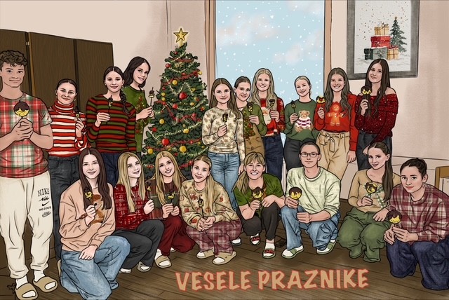 Dijaki programa ITS – Zdrava prehrana so se od letošnjega leta sladko poslovili v prazničnem vzdušju in z veseljem ter optimizmom že zrejo v leto 2026. Ob tej priložnosti so pripravili svojo tradicionalno, osvežujočo ananasovo sladico brez dodanega sladkorja, ki je lepo dopolnila praznične dni. Ker je ostalo še nekaj svežega ananasa, so ga razrezali na kolute, pomočili v črno čokolado in se z njim sladko posladkali. Za piko na i in prav posebno praznično noto je sošolka Julija izdelala čudovito skupinsko čestitko, ki je prijetno zaokrožila dogodek ter pospremila dijake v novo leto s toplimi željami.