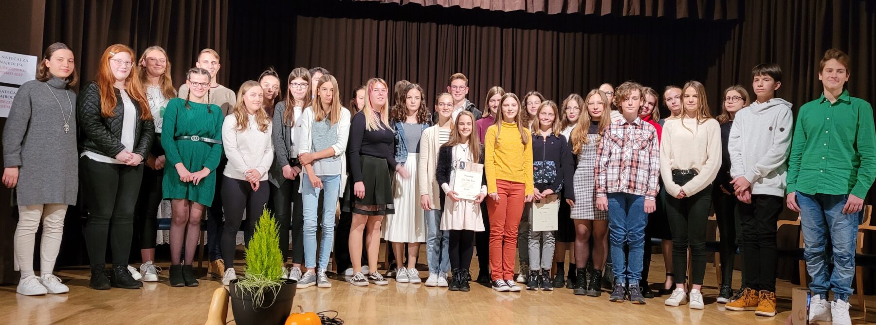 Larisa Rataj iz 4c se je v nedeljo, 6. 11. 2022, udeležila prireditve Kulturnega društva Josipine Turnograjske iz Preddvora, na kateri so razglasili rezultate 11. natečaja za najboljše ljubezensko pismo. Njeno besedilo je bilo izbrano za najboljše pismo v kategoriji srednješolcev. Na natečaj je sicer prispelo 138 pisem, med njimi 37 srednješolskih. Tema letošnjega natečaja je bila ljubezen do mladih oz. mladi za mlade.