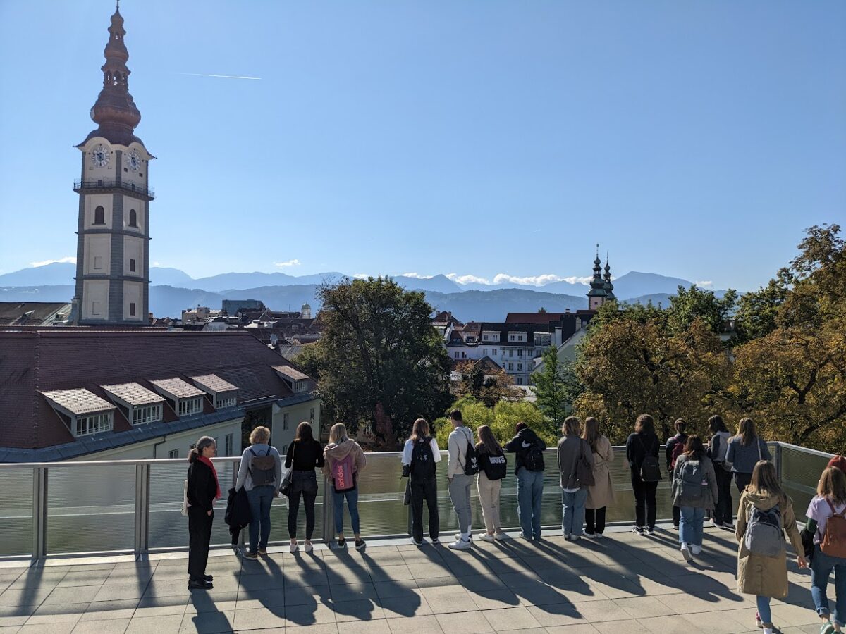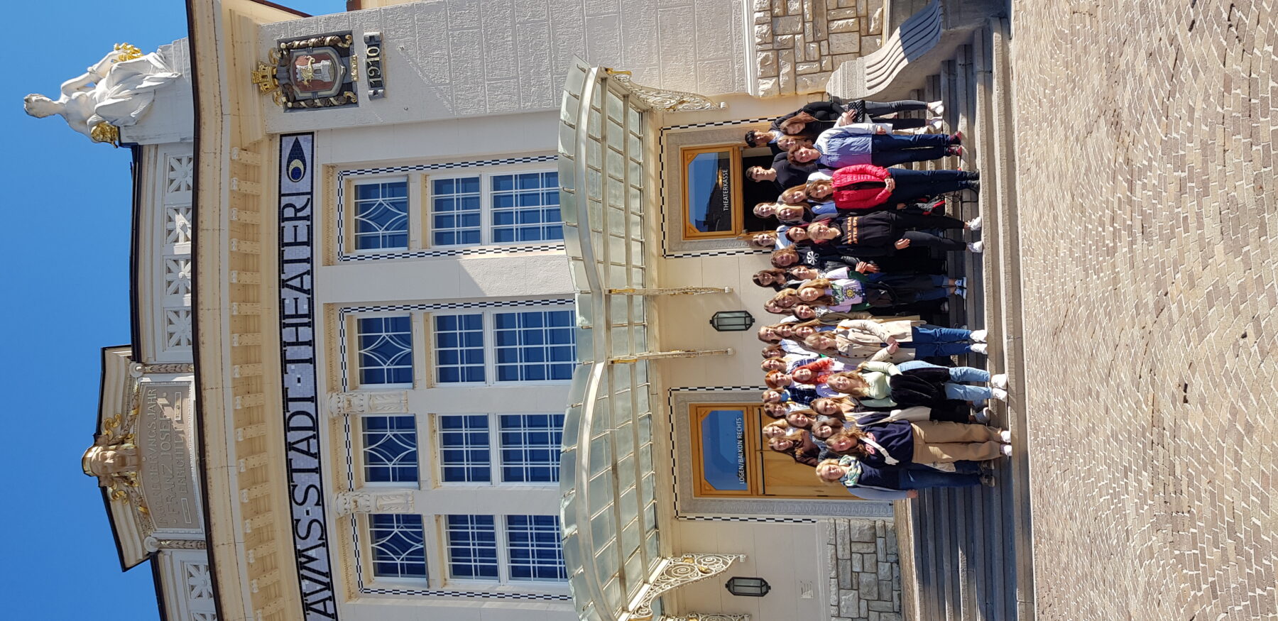 34 dijakov 3. in 4. letnika, ki bodo v letošnjem šolskem letu opravljali izpit DSD 1 oziroma DSD 2, se je v spremstvu treh učiteljic nemščine ter prostovoljke iz Nemčije v petek, 23. 9. 2022, odpravilo na ekskurzijo v Celovec. Dijaki so se tekom ekskurzije seznanili z zgodovino glavnega mesta avstrijske zvezne dežele Koroške ter s pomenom, ki ga ima mesto za Slovence na Koroškem. V dopoldanskem času smo vsi udeleženci obiskali mestno gledališče, kjer smo imeli organizirano vodenje. Stadttheater že dolgo časa slovi po izjemnih produkcijah, nas pa so vodniki popeljali v zakulisje. Obiskali smo različne delavnice in imeli priložnost videti, kje izdelujejo rekvizite, kako izdelujejo lasulje ter kakšne kostume šivajo za gledališke predstave. Videli smo prostore, kjer igralci vadijo za predstave, ter poslušali pevski zbor pri vaji.