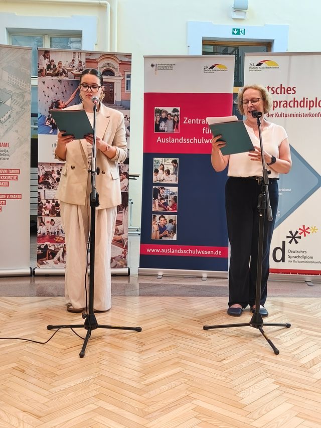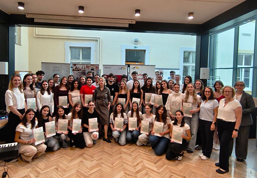V ponedeljek, 22. septembra 2025, je na šoli potekala podelitev nemških jezikovnih diplom DSD1 in DSD2 ter francoskih jezikovnih diplom DELF. Poleg podelitve so ob evropskem dnevu jezikov dijaki 1. in 2. letnika pri pouku španščine, francoščine, nemščine in latinščine ter dijaki 3k pri izbirnem predmetu ruščina reševali Kahoot, pri čemer so se preizkusili v poznavanju različnih jezikov in tudi dežel, kjer te jezike govorijo. Ure pouka drugega tujega jezika so bile tudi glasbeno obarvane. Dijaki so poslušali več pesmi v tujem jeziku in se naučili besedišča, s katerim so lahko izrazili, ali jim neka pesem ugaja ali ne. V razredih so dijaki izbrali pesem, ki jim je bila najbolj všeč, in gotovo ji bodo še kdaj prisluhnili.
