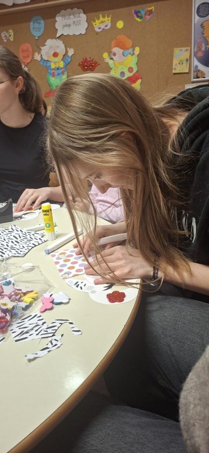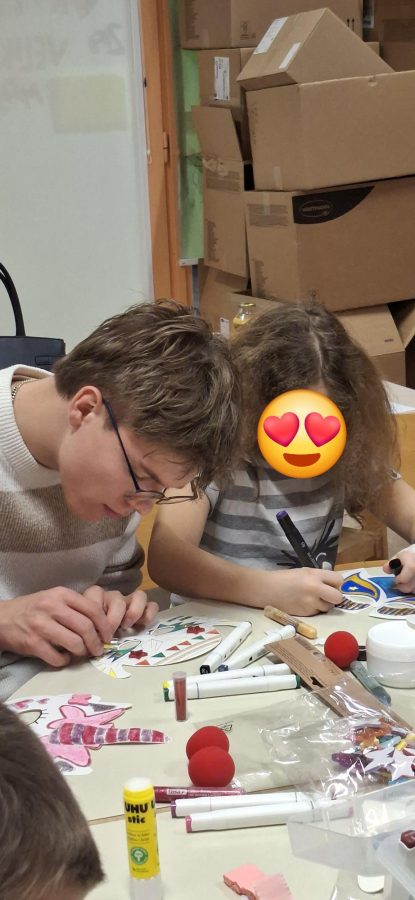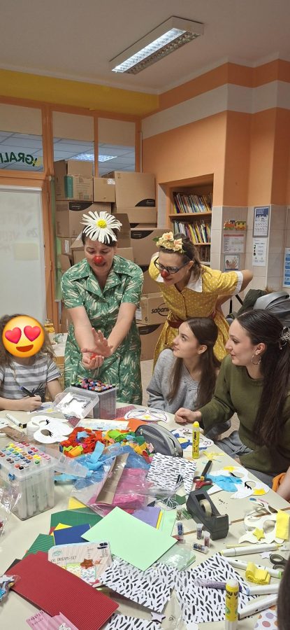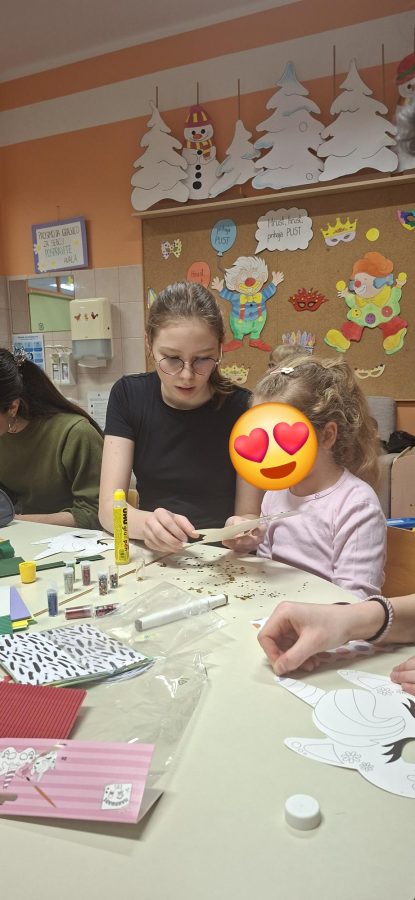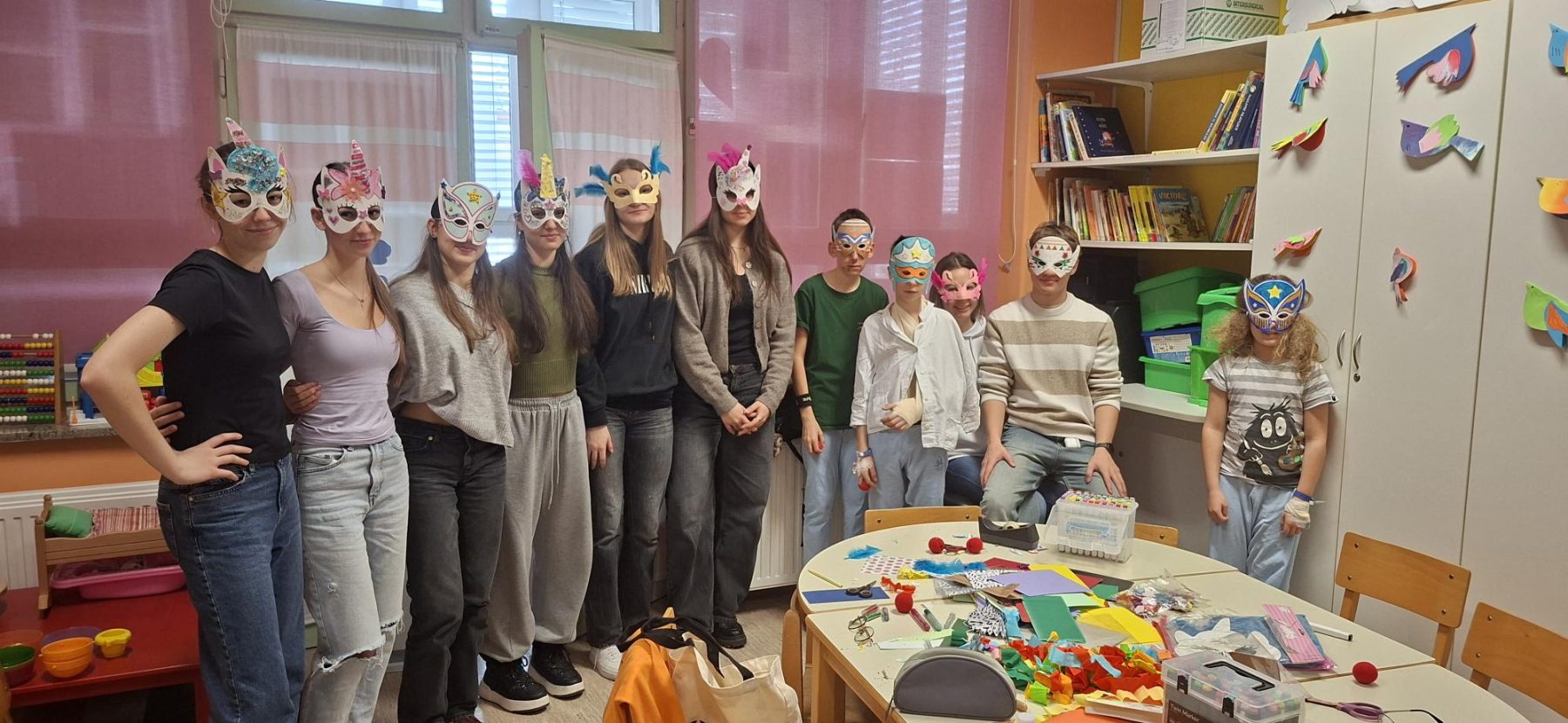 Otroci so sprva nekoliko zadržano, a s pomočjo prostovoljcev hitro začeli ustvarjati. Nastali so zelo lepi in domiselni izdelki, otroci pa so med delom pokazali veliko ustvarjalnosti in natančnosti. Posebno presenečenje sta med delavnico pripravili dve gostji – klovnesi. Tako otroke kot prostovoljce sta razvedrili s čarovniškimi triki in glasbo, vsak otrok je dobil tudi svoj rdeči nosek. Dopoldne so tako vsi zaključili z nasmehi in pisanimi pustnimi maskami na obrazih.