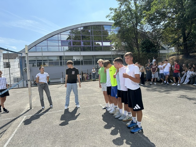 Danes, 8. septembra 2025, smo na Gimnaziji Novo mesto obudili tradicijo krsta fazanov, ki je v času epidemije nekoliko zamrla. Dijaška organizacija je pripravila nepozaben sprejem za novince, poln zabavnih preizkušenj in medsebojnega povezovanja. Osrednji dogodek je bilo tekmovanje za koruzna zrna – simbol znanja, ki ga bodo naši dijaki pridobivali na poti do mature. V duhu sodelovanja in prave ekipne energije je zmago osvojil 1e, na koncu pa so vsi letošnji fazani svečano zaprisegli, da bodo spoštovali tradicijo svojih predhodnikov ter z odgovornostjo in ponosom nosili ime dijak Gimnazije Novo mesto.