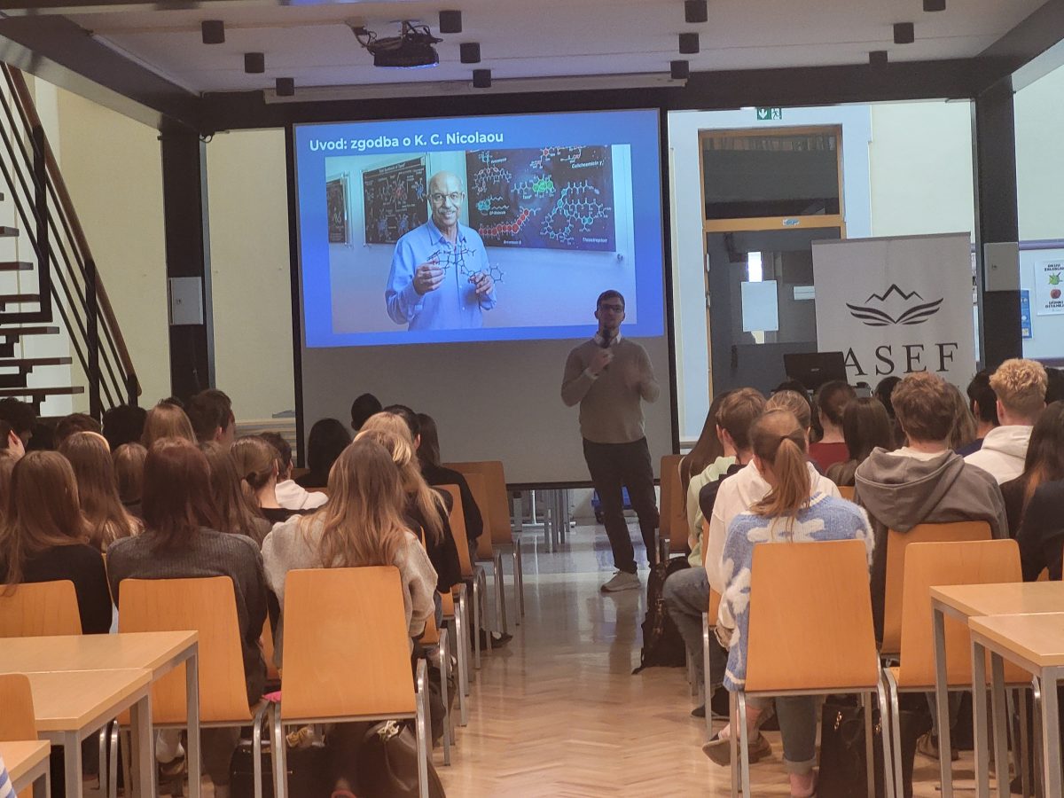 V uvodu ga je s ponosom predstavila profesorica kemije Branka Klemenčič, ki je izpostavila njegova številna priznanja in dosežke iz gimnazijskih let. Predavanje je dijakom odprlo vpogled v to, kako lahko iz šolskih klopi stopijo na vrhunske raziskovalne ustanove po svetu, če jih vodijo radovednost, vztrajnost in pogum.