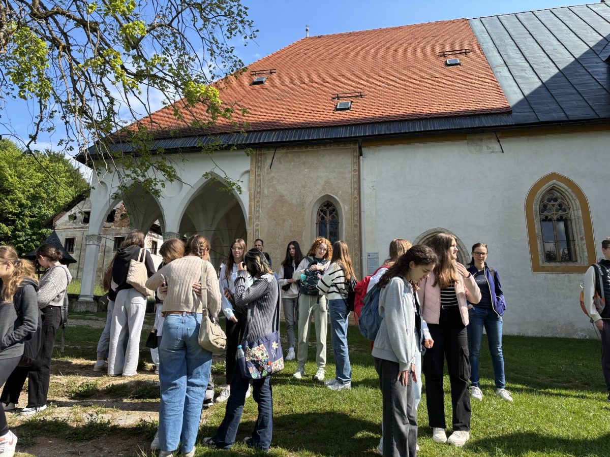 Zelo poučen in zanimiv je bil tudi ogled Tavčarjevega dvorca na Visokem in celotnega visoškega parka. Na grobu pisatelja Ivana Tavčarja smo prižgali svečko in uživali v prelepem razgledu po Poljanski dolini. Navdušila nas je tudi čudovita romarska cerkev Marijinega oznanjenja v Crngrobu, v kateri smo spoznavali različne umetnostne sloge, zlasti gotiko in barok.