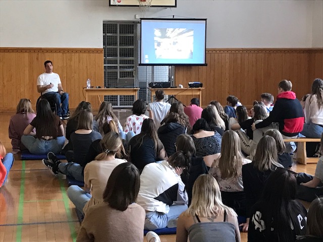 Prejšnji teden smo v okviru zdravstvene vzgoje začeli z aktivnostmi v 3. in 4. letniku. V torek, 18. 10. 2022, je bilo za 3. letnik izvedeno predavanje z naslovom Invalidi za večjo varnost v cestnem prometu. Delavnico že vrsto let na naši šoli izvaja Žiga Breznik, ki predava kot član društva Zavoda Vozim. S svojo življenjsko zgodbo, ko je bil udeleženec prometne nesreče, ki je ob tem postal paraplegik, poskuša ozaveščati dijake o pomenu varnosti vseh nas v cestnem prometu. Dotakne se tem uporabe telefona med vožnjo, pomena zbrane vožnje, uporabe varnostnega pasu, nošenja čelade na kolesu ipd. Hkrati preko svoje zgodbe razlaga, ko se mu je kot mlademu vozniku zgodila nesreča in je čez noč ostal na invalidskem vozičku. Kaj mu je prineslo novo življenje in kako ni nikoli obupaval nad tem, kar se mu je zgodilo, ampak je v tem našel nove priložnosti za veselje v življenju.