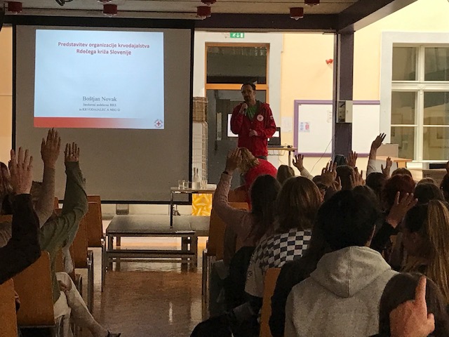 V sredo, 19. 10. 2022, pa je bilo za 4. letnik organizirano predavanje o krvodajalstvu, ki ga je izvedel Boštjan Novak iz RKS ter darovanju organov in matičnih celicah, ki sta ga izvedla študenta Medicinske fakultete iz Maribora, ki delujeta v društvu Epruvetka. Na predavanju so dijaki spoznali pomen darovanja krvi in dobili povabilo na krvodajalske akcije. Predavatelj je govoril o tipih krvi, kaj je pomembno pri darovanju in kako le to poteka. S konkretnimi podatki je predstavil vsakodnevno potrebo po krvi v Sloveniji. Na to predavanje sta se navezala tudi študenta medicine, ki sta predstavila pomen in načine darovanja organov ter matičnih celic. Z RK Novo mesto smo se dogovorili, da bomo organizirali dijaško akcijo darovanja krvi v transfuzijski enoti Nove mesto in poskušali k sodelovanju pritegniti čim več naših dijakov.