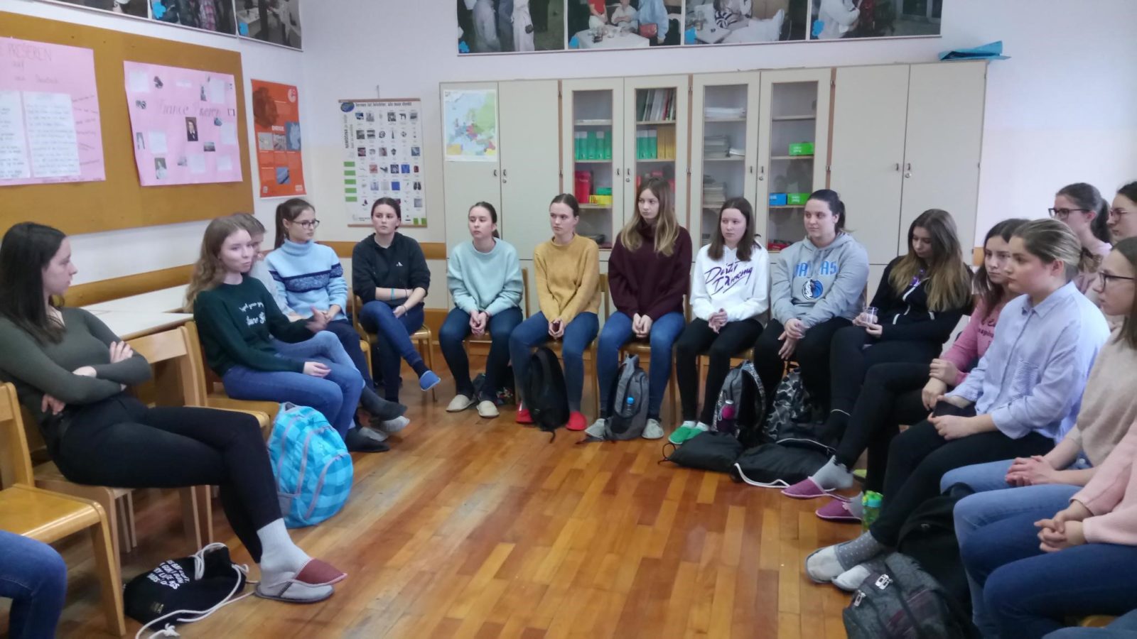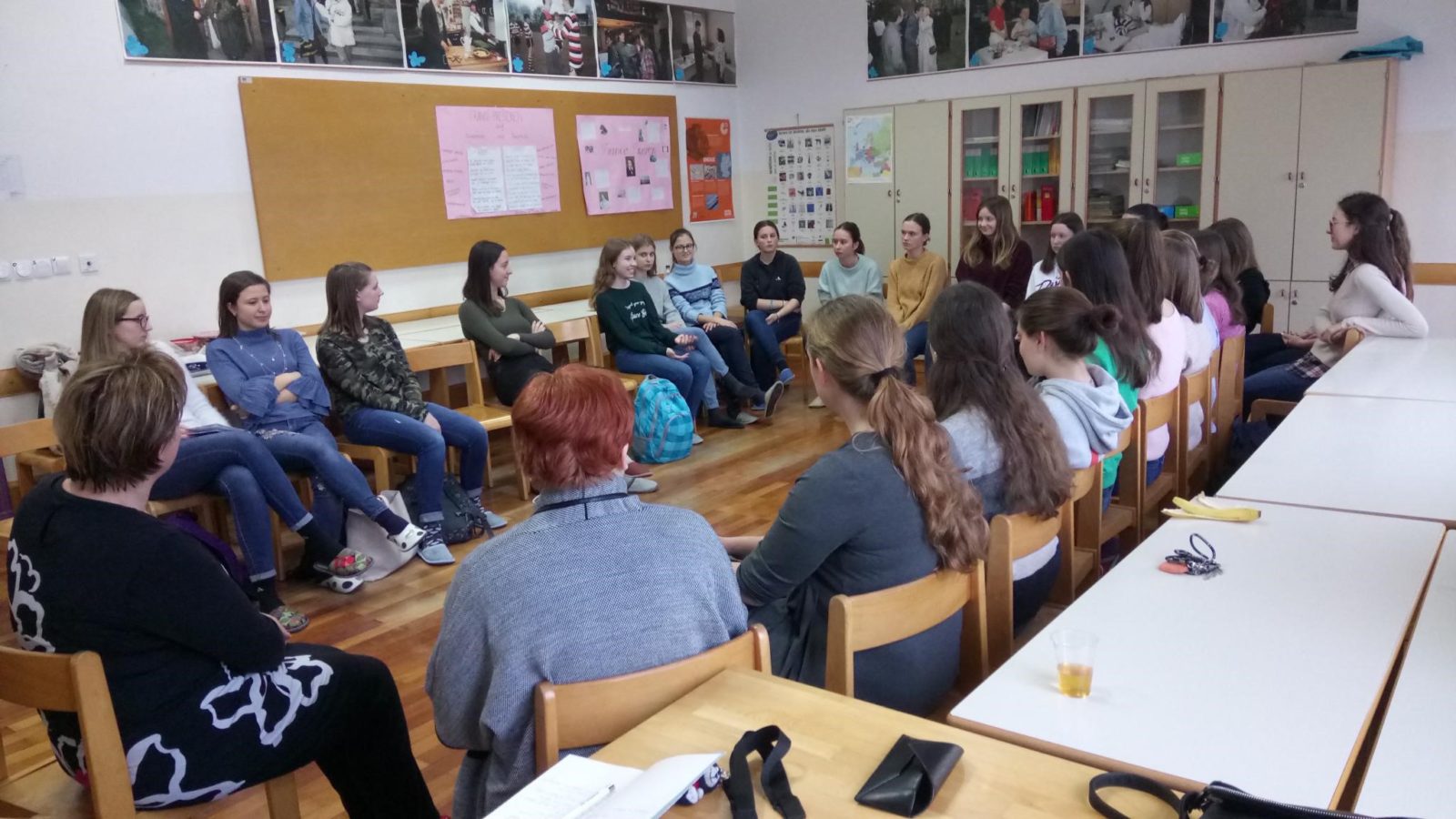 V četrtek, 31. 1. 2019, so se 8. šolsko uro srečale prostovoljke in mentorice prostovoljstva Anica Kastelec, Karmen Čarman, Suzana Krvavica in Nuša Rustja ter izmenjale izkušnje o delu v prvem polletju. Prišlo je 22 prostovoljk od skupaj 51 prijavljenih v OIV Prostovoljstvo in humanitarne akcije. Prostovoljno delo opravljajo v različnih organizacijah – na DRPD, OZRK, v domu starejših občanov, na pediatričnem in nevrološkem oddelku itn. – ali kot tutorke na šoli. Načrtovale so tudi nadaljnje delo, zlasti sodelovanje v akciji Dan za spremembe, ki bo 6. aprila potekala v romskem naselju Brezje.