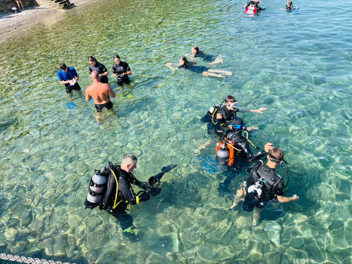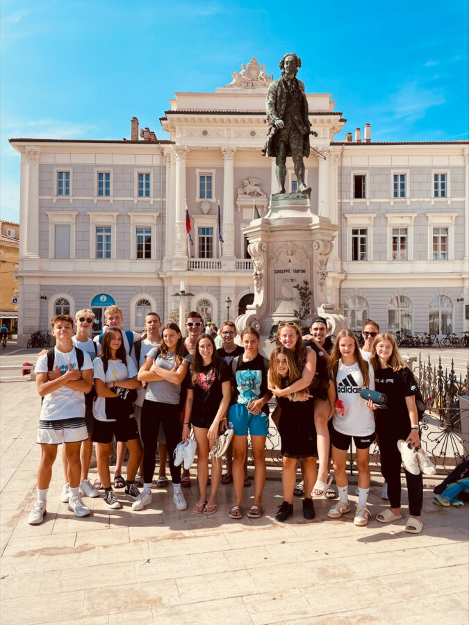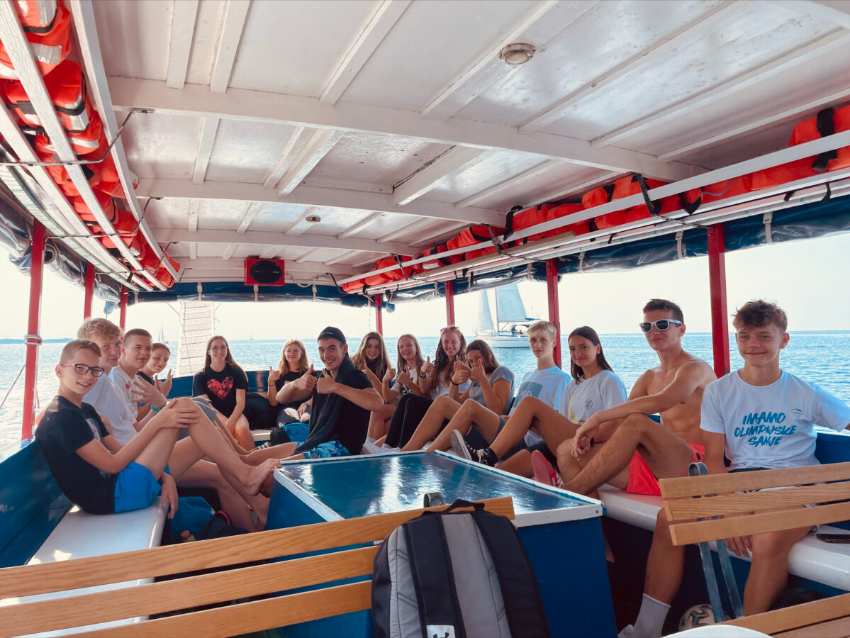Dijaki 1š so, kot se spodobi, športno preživeli svoj prvi dan športnega tabora na slovenski obali. Vsi dijaki so z odliko opravili svoj prvi potop z jeklenko, se razmigali na igrišču odbojke na mivki in se okrepčali ob plaži Pirana. Z ladjico so se odpeljali na Debeli Rtič, kjer bodo preživeli naslednje štiri dni.