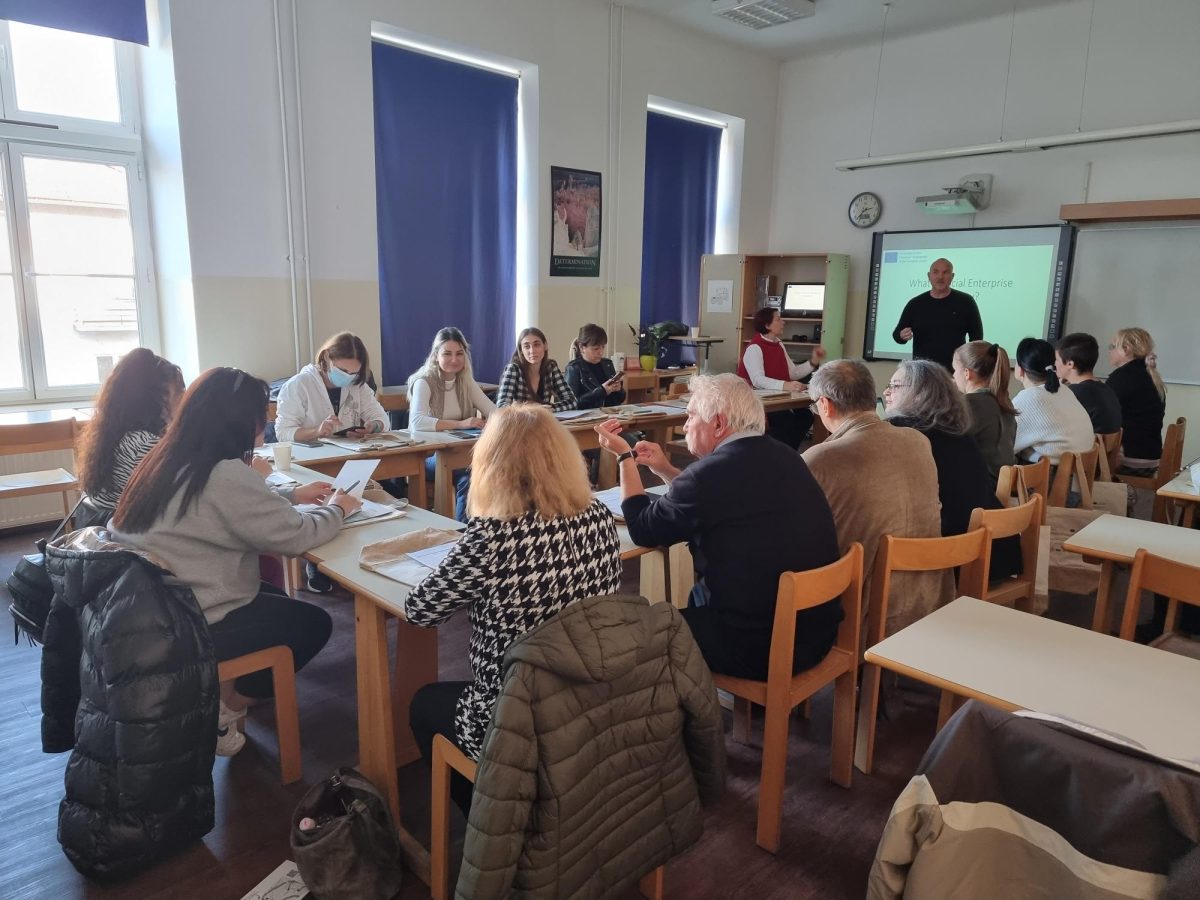 Od 6. do 12. novembra 2022 smo na Gimnaziji Novo mesto gostili C4 Joint Staff Training (JST). Prvi dan so udeleženci iz Madžarske, Grčije, Turčije in Slovenije udeležili predstavitve Knofa, socialnega podjetja, ki v Sloveniji spodbuja trajnostni način življenja in krožno gospodarstvo. Obiskali smo tudi socialno podjetje Cekr in Butik Stara šola, second hand trgovino. Popoldne so se učitelji udeležili delavnice o socialnem podjetništvu.