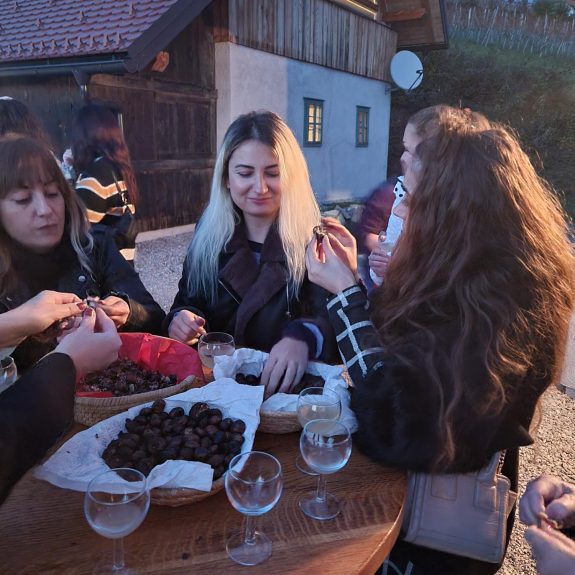 Podjetniška znanja so udeleženci pridobivali na obisku Podjetniškega inkubatorja Podbreznik, preizkusili pa so tudi start-up inovacijo VISUS, pripomoček za slepe in slabovidne. Srečanje smo zaključili na Matjaževi domačiji s spoznavanjem dolenjskih kulinaričnih dobrot in etnoloških posebnosti ob prazniku sv. Martina.