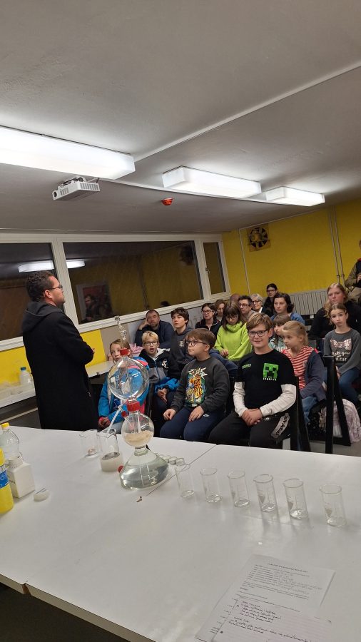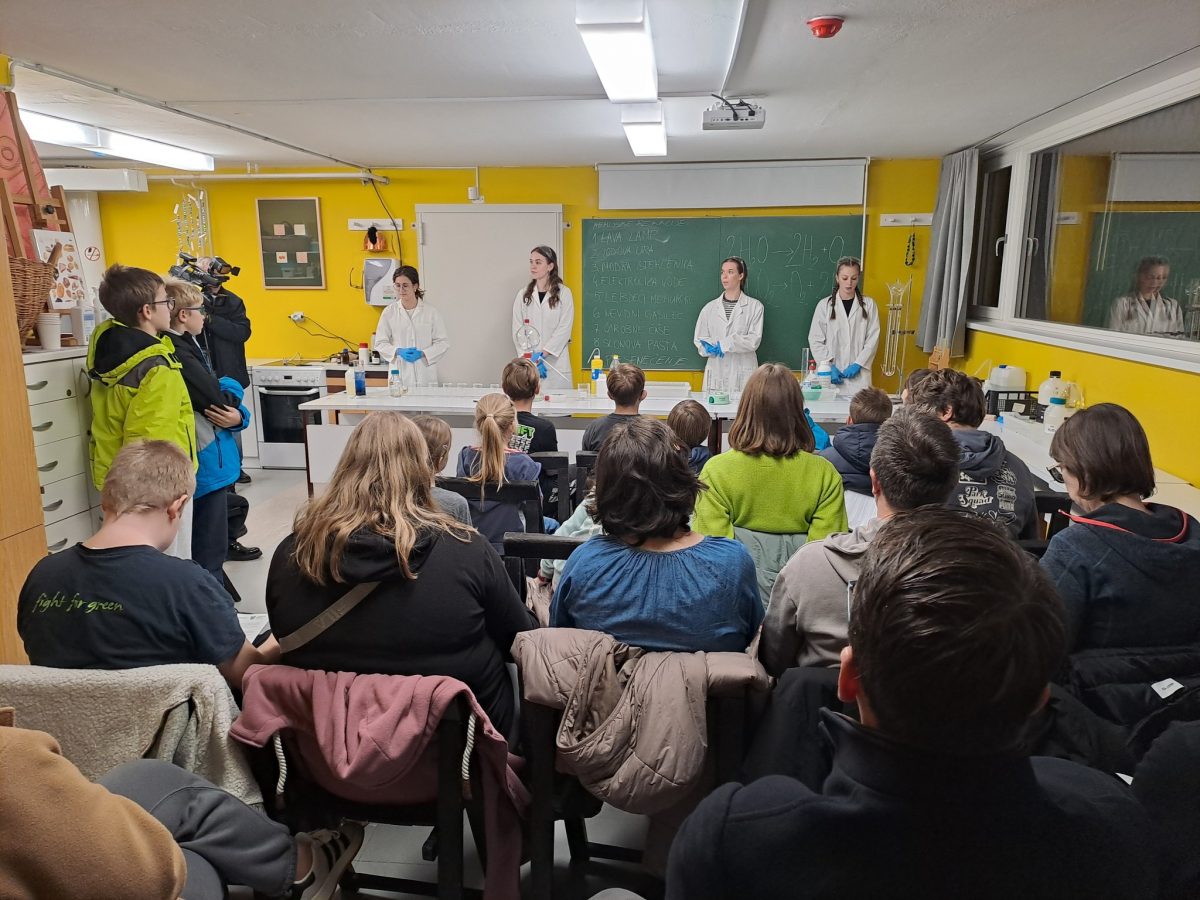 Na večer 19. 11. 2025 so dijaki Gimnazije Novo mesto skupaj s profesorji kemije v Dolenjskem muzeju pripravili posebno doživetje. Obiskovalcem so z zanimivimi kemijskimi eksperimenti približali svet kemije, kjer ima steklo nepogrešljivo vlogo. Prav stekleni laboratorijski pripomočki omogočajo varno opazovanje, natančno merjenje in razumevanje procesov, ki se dogajajo v kemiji.